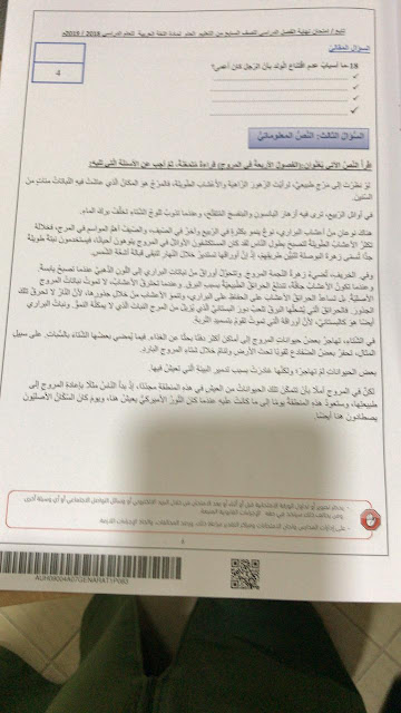 الصف السابع, الفصل الأول, لغة عربية, 2018-2019, امتحان نهاية الفصل الاول 2018-2019