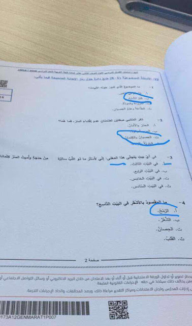 الصف الثاني عشر, الفصل الأول, لغة عربية, 2018-2019, امتحان نهاية الفصل الاول2018-2019
