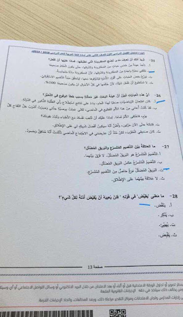 9. اجتماعيات, الفصل الأول, 2021-2022, حل أسئلة الامتحان النهائي 2021-2022