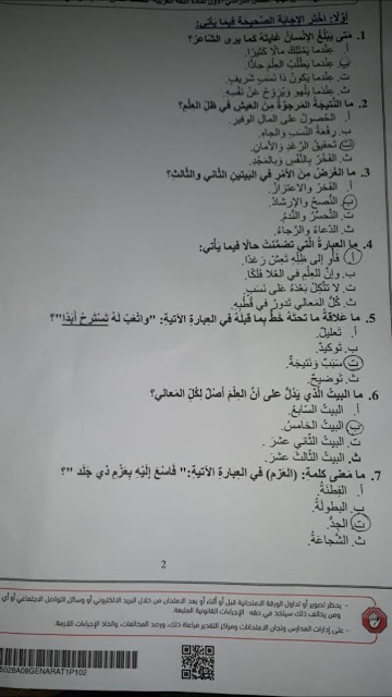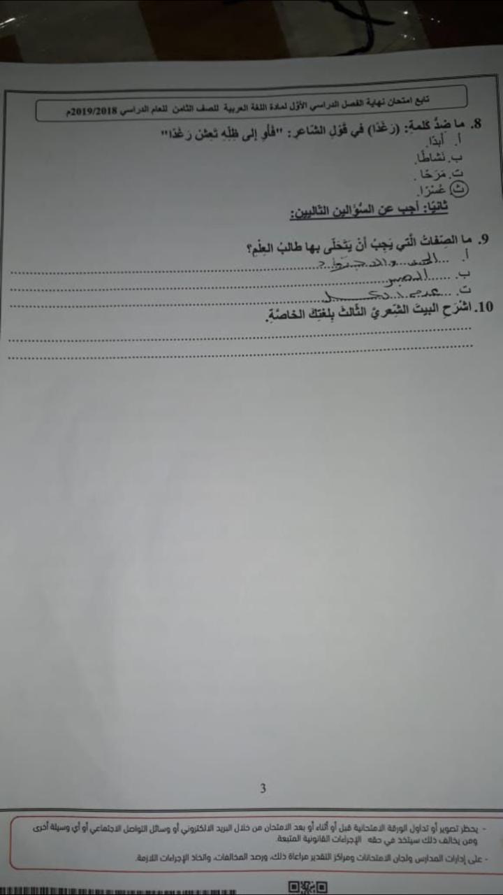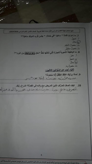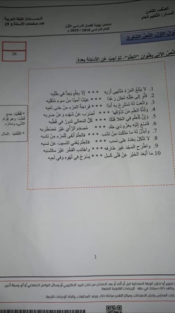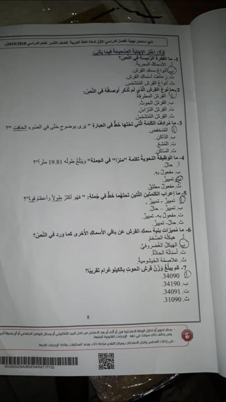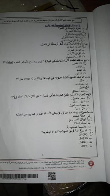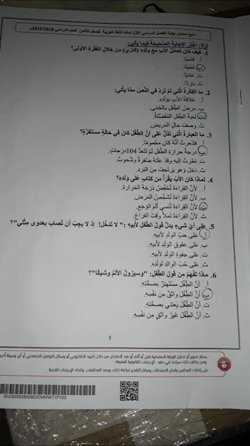 معلومات الملف: الصف الثامن, الفصل الأول, لغة عربية, 2018-2019,امتحان نهاية الفصل الاول 2018-2019 | ||