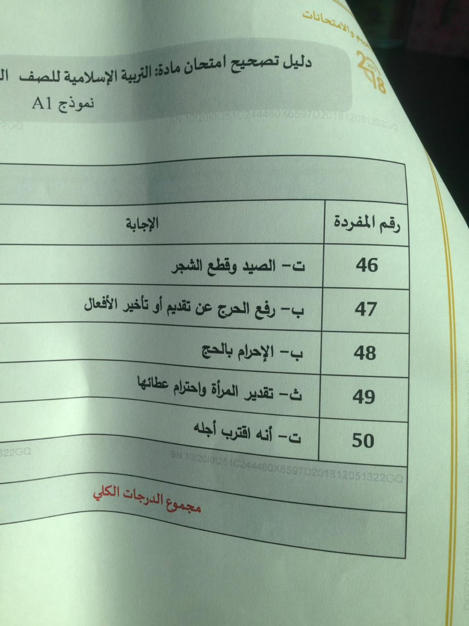 معلومات الملف: الصف التاسع, الفصل الأول, تربية اسلامية, 2018-2019, دليل تصحيح تربية اسلامية 2018-2019 | ||