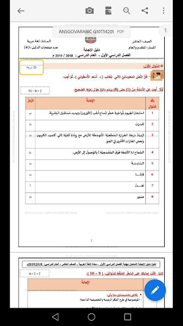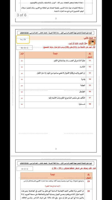معلومات الملف: الصف العاشر, الفصل الأول, لغة عربية, 2018-2019, دليل تصحيح امتحان نهايةالفصل الاول 2018-2019 | ||