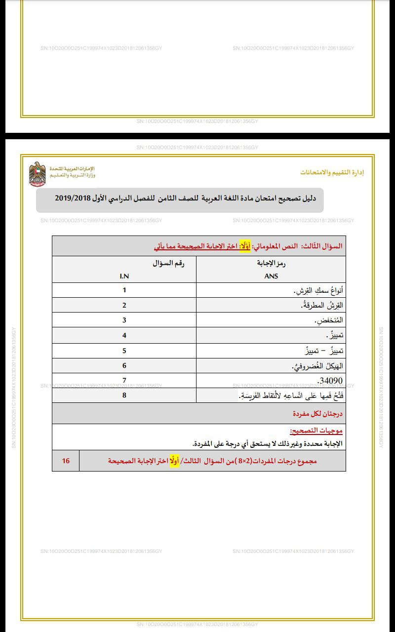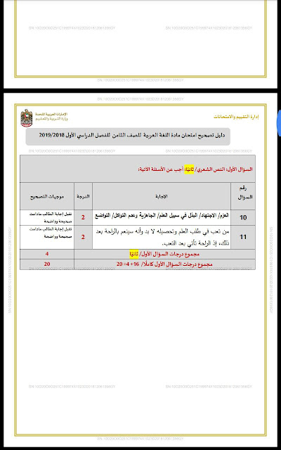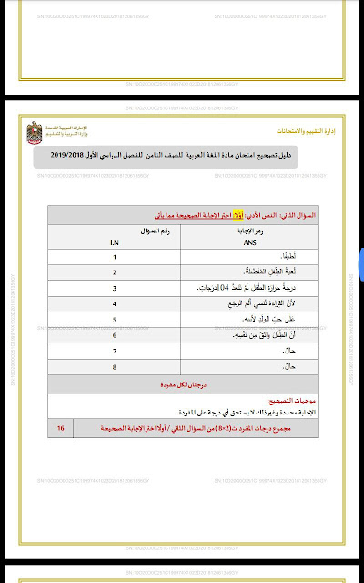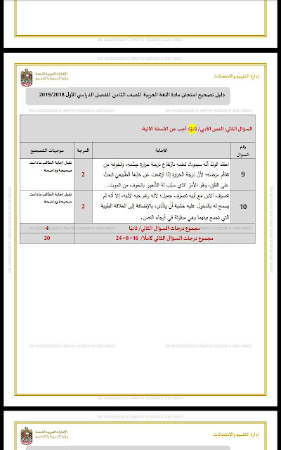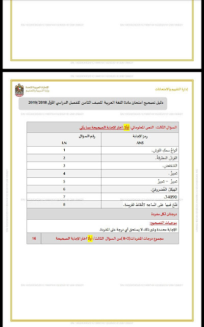 معلومات الملف: الصف الثامن, الفصل الأول, لغة عربية, 2018-2019, دليل تصحيح امتحان نهاية الفصل الاول 2018-2019 | ||