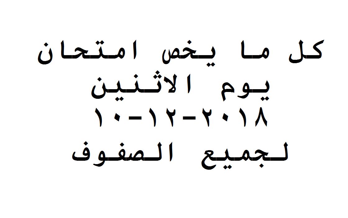 كل ما يخص امتحان يوم الاثنين 10-12-2018 لجميع الصفوف جميع الصفوف لديها لغة انجليزية: