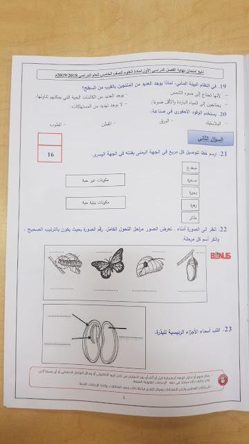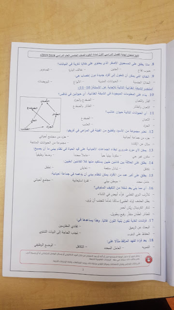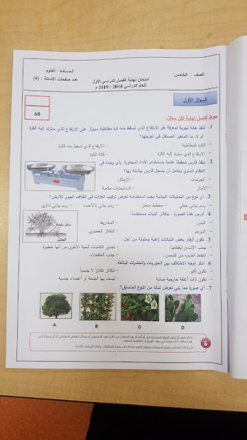 معلومات الملف: الصف الخامس, الفصل الأول, علوم, 2018-2019, امتحان نهاية الفصل الأول 2018-2019 | ||