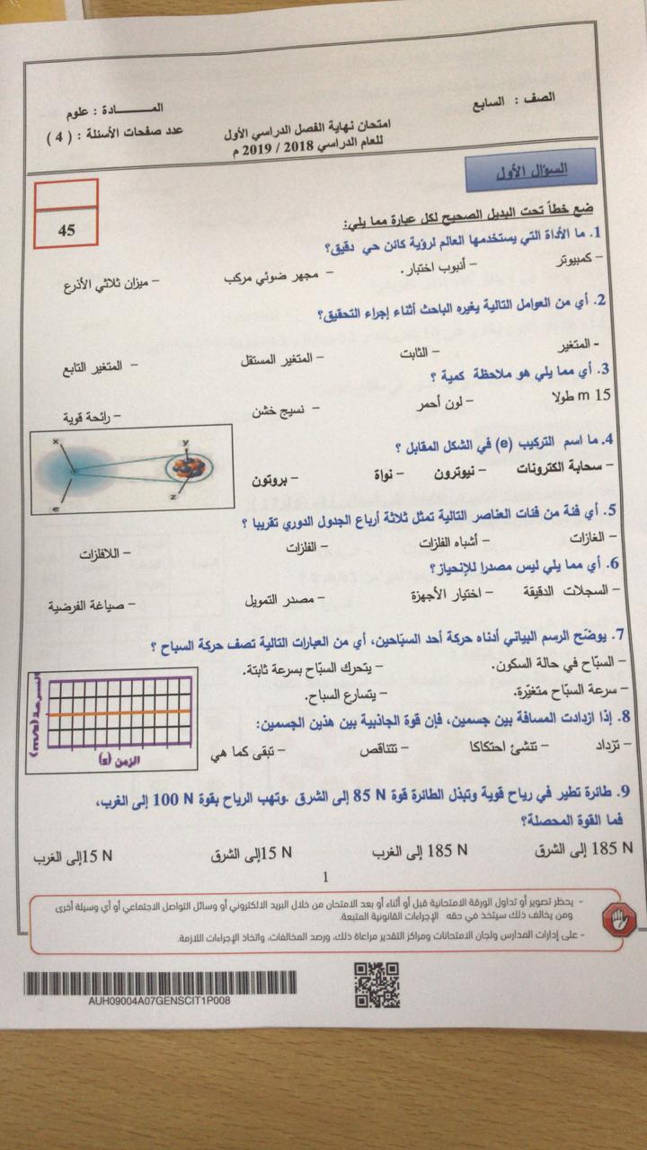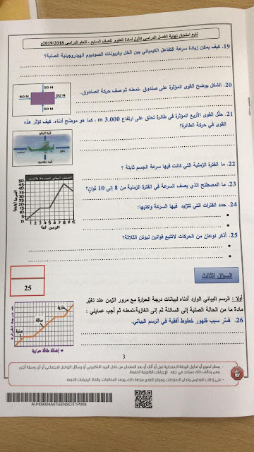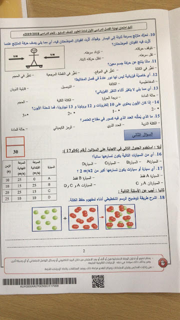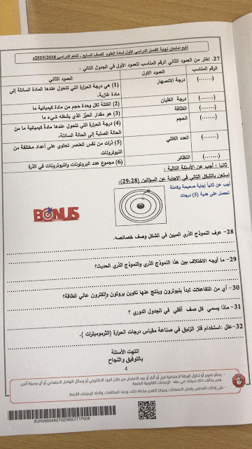 معلومات الملف: الصف السابع, الفصل الأول, علوم, 2018-2019, امتحان نهاية الفصل الاول 2018-2019 | ||