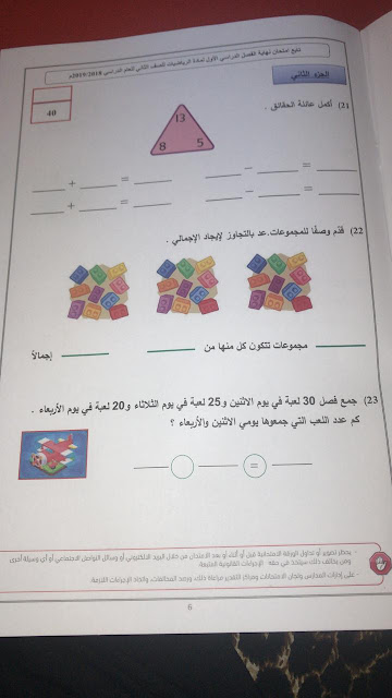 2. الصف السادس, تربية اسلامية, أسئلة الاختبار التجريبي الثاني مع الإجابات