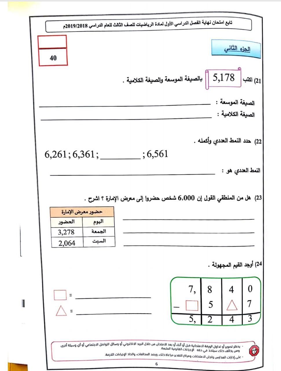 4. الصف الثالث, اجتماعيات, نموذج اختبار تدريبي يحاكي الاختبار النهائي