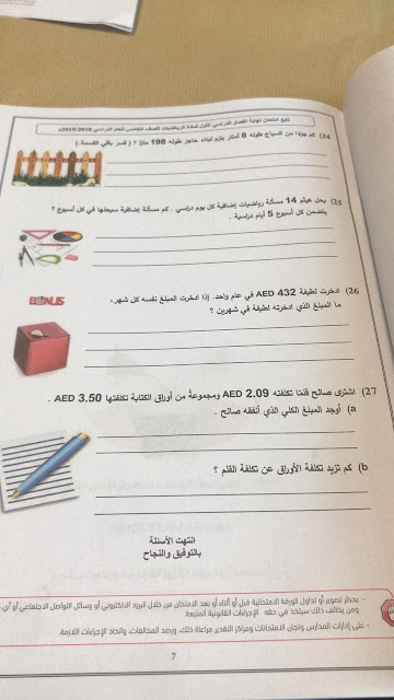 أنت هنا: موقع المناهجالمناهج الإماراتية الصف الخامس رياضيات الفصل الأول الامتحان النهائي