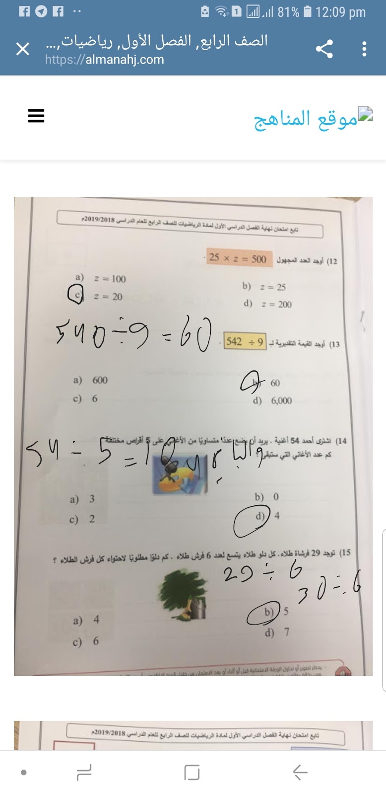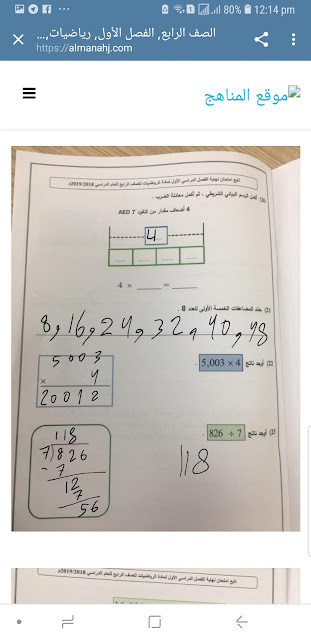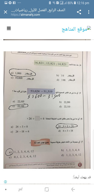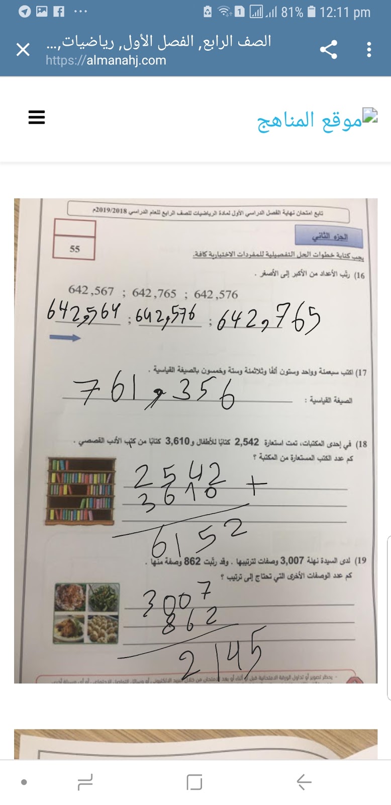 معلومات الملف: الصف الرابع, الفصل الأول, رياضيات, 2018-2019, حل الأسئلة الرسمية لامتحان نهاية الفصل الاول 2018-2019 | |||