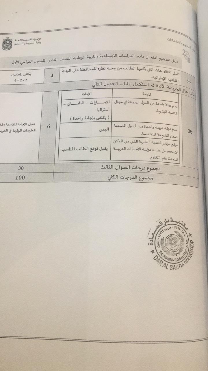 معلومات الملف: الصف الثامن, الفصل الأول, اجتماعيات, 2018-2019, دليل تصحيح امتحان نهاية الفصل الاول 2017-2018 | ||