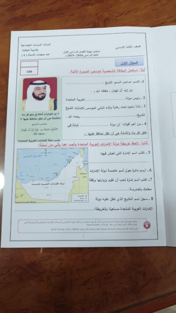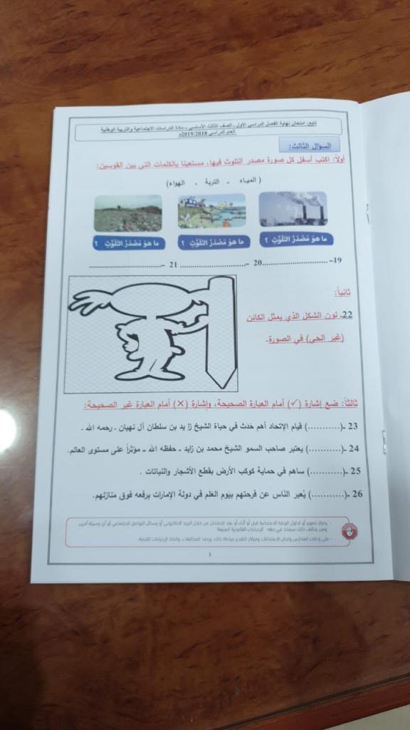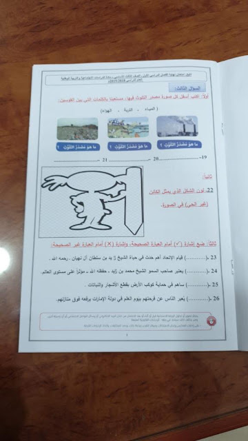 الصف الثالث, الفصل الأول, اجتماعيات, 2018-2019, امتحان نهاية الفصل الاول 2018-2019