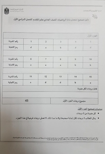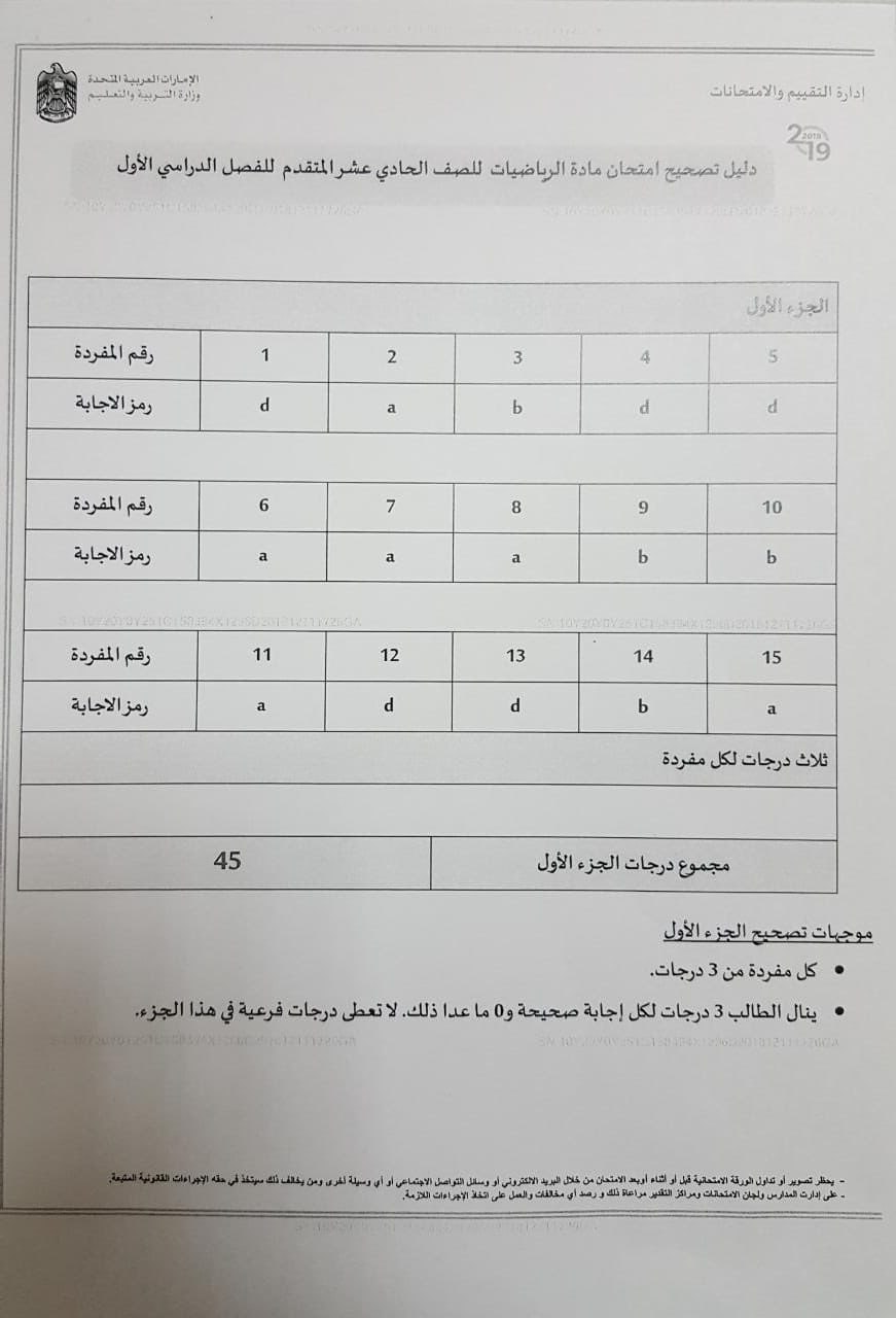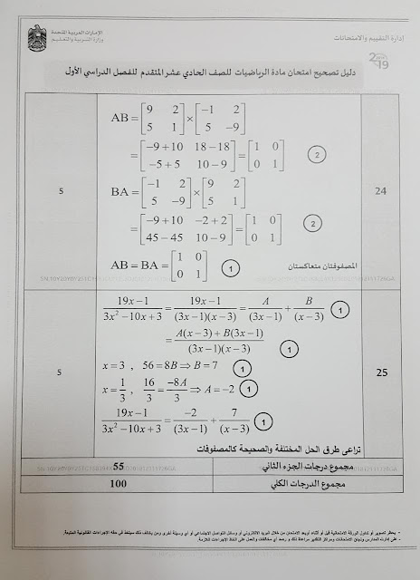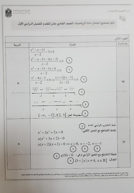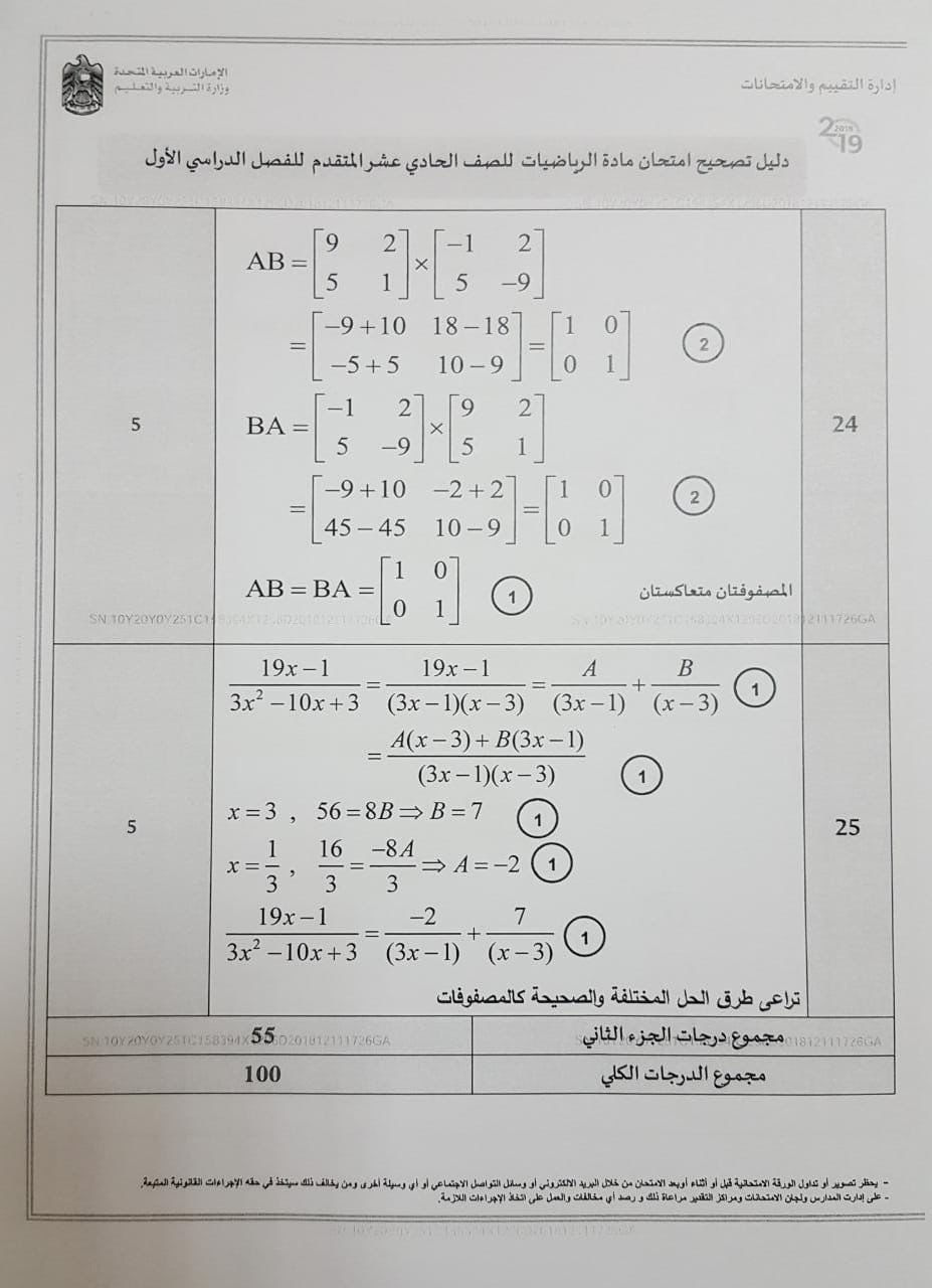 معلومات الملف: الصف الحادي عشر المتقدم, الفصل الأول, رياضيات, 2018-2019, دليل تصحيح امتحان نهاية الفصل الاول 2018-2019 | ||
