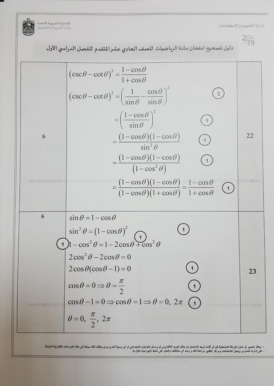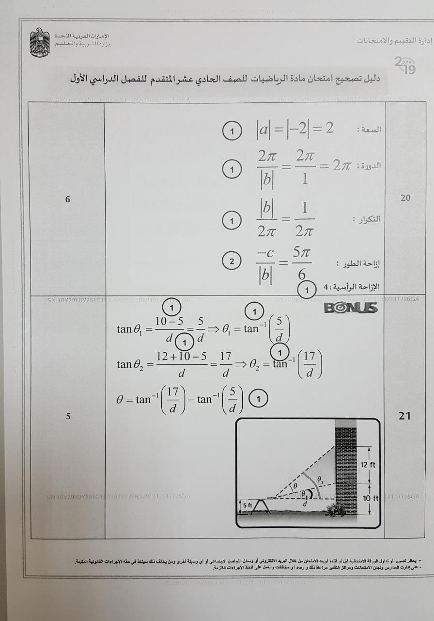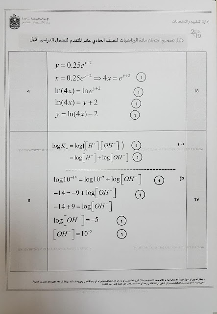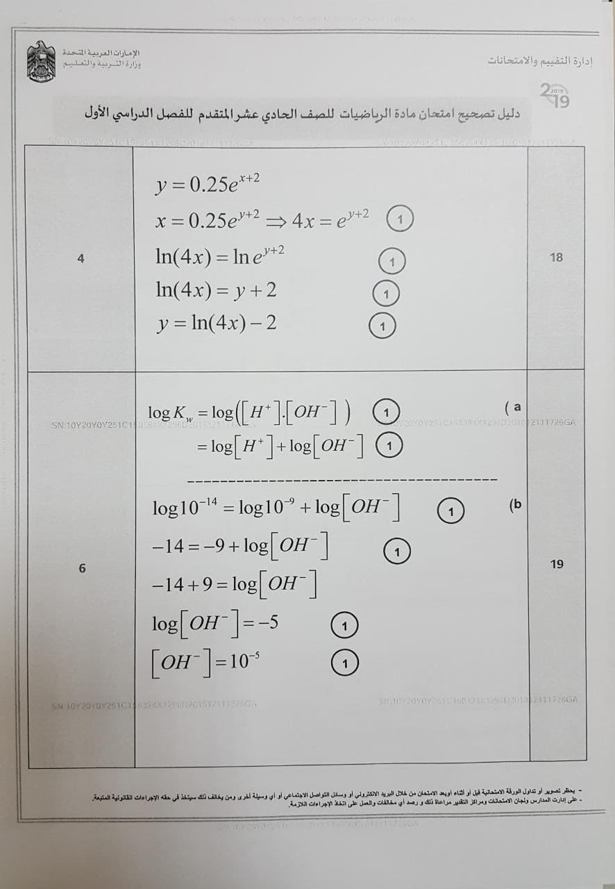معلومات الملف: الصف الحادي عشر المتقدم, الفصل الأول, رياضيات, 2018-2019, دليل تصحيح امتحان نهاية الفصل الاول 2018-2019 | ||