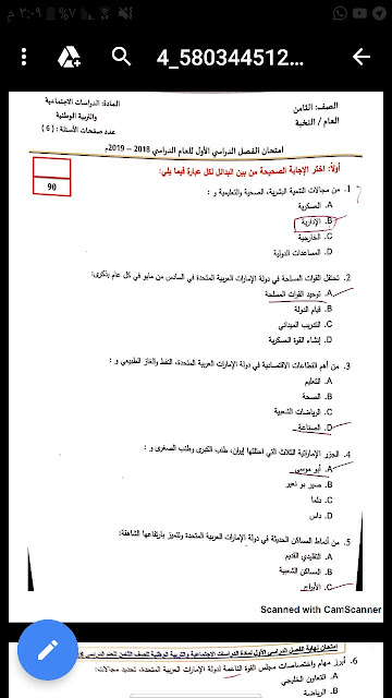 معلومات الملف: الصف الثامن, الفصل الأول, اجتماعيات, 2018-2019, امتحان نهاية الفصل الاول 2018-2019 | ||