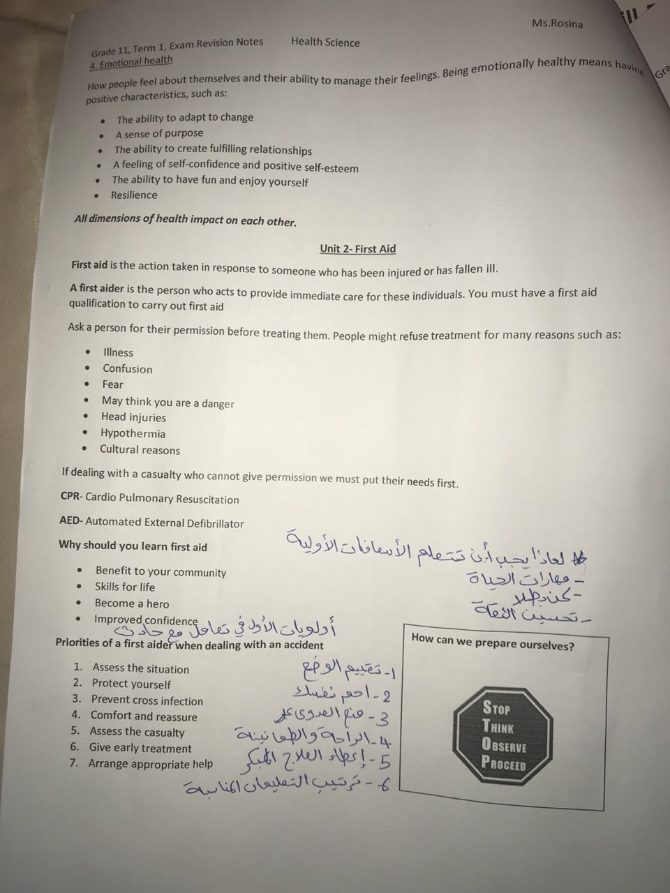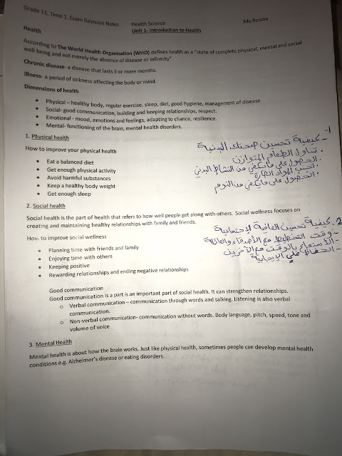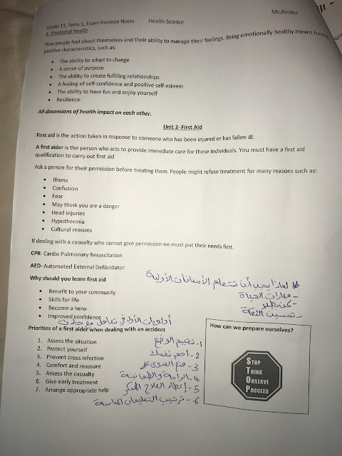 | علوم صحية اوراق مراجعة لامتحاة نهاية الفصل الاول عددها 10 اوراق | ||