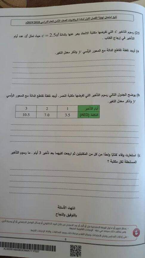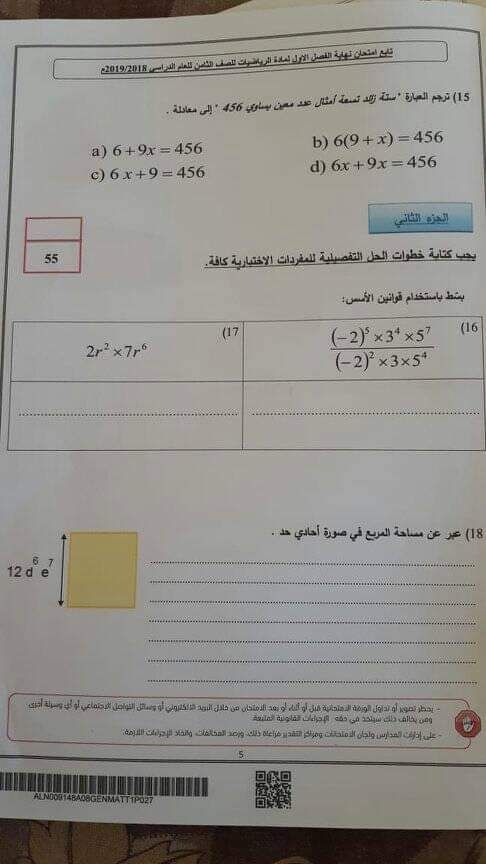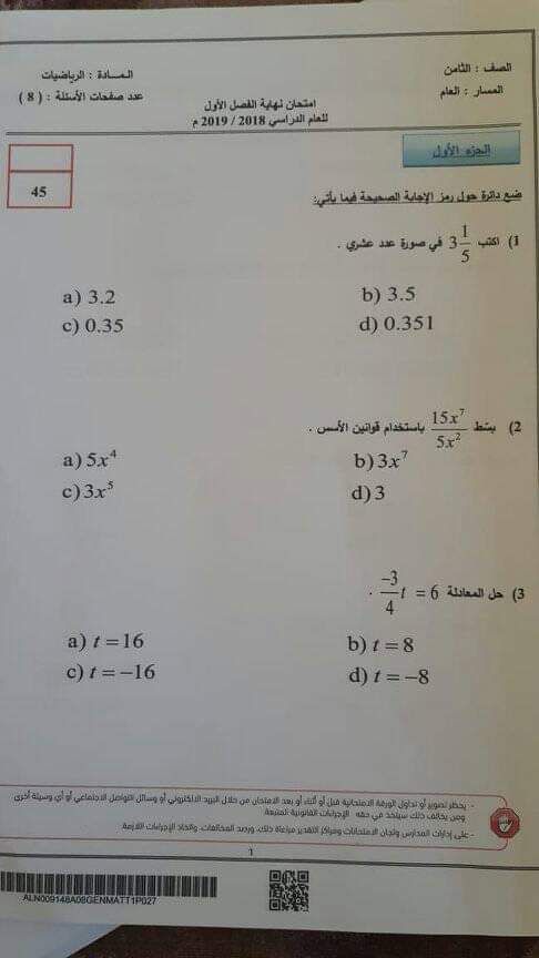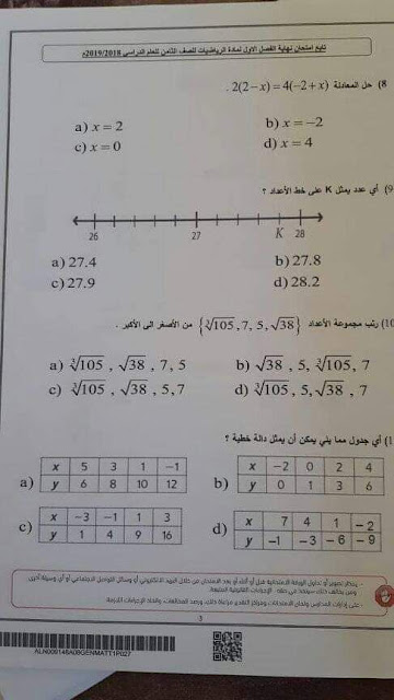 أنت هنا: موقع المناهج ⇦ المناهج الإماراتية ⇦ الصف الثامن ⇦ رياضيات ⇦ الفصل الأول ⇦ الامتحان النهائي |