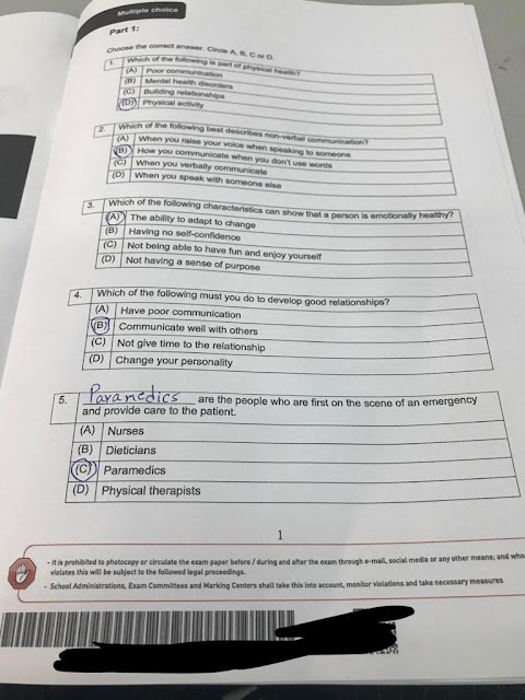 | علوم صحية امتحان نهاية الفصل الاول | ||