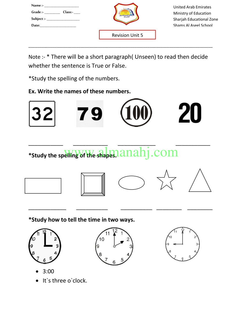 معلومات الملف: الصف الثالث, الفصل الثاني, لغة انكليزية, 2018-2019, اوراق عمل الوحدة الخامسة | |||