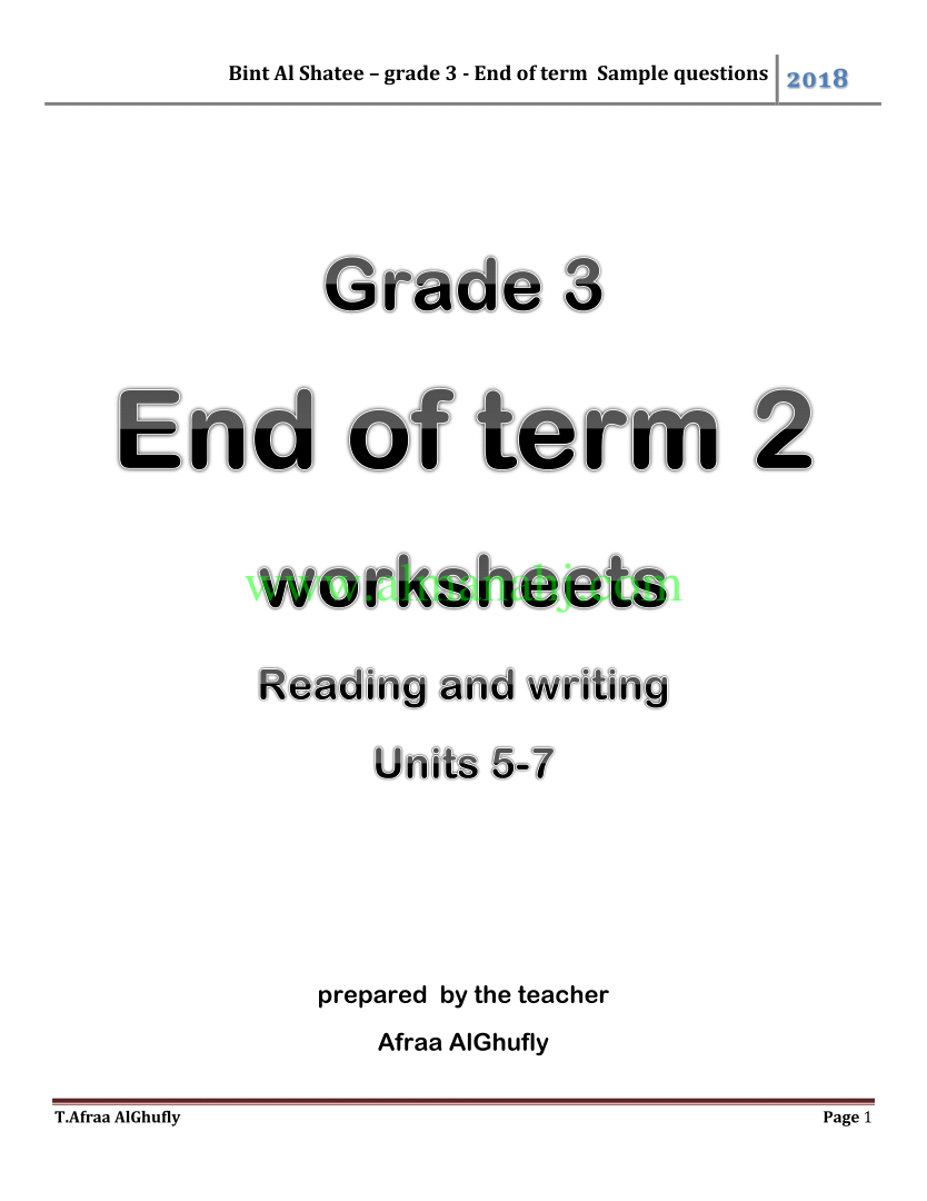 معلومات الملف: الصف الثالث, الفصل الثاني, لغة انكليزية, 2018-2019, اوراق الوحدات 5 - 6 - 7 | |||