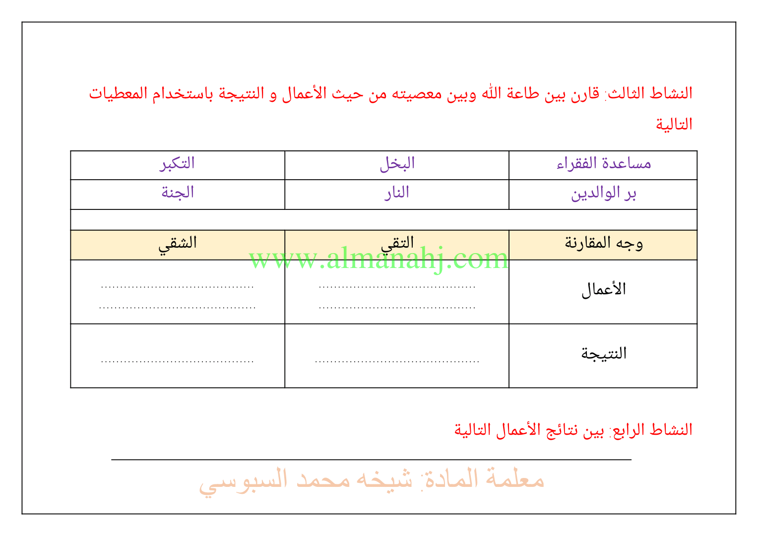 السابق: ورقة عمل أولى سورة الليل | الملف الحالي: 6393 | التالي: ملخص وأوراق عمل درس حسن الخلق | |