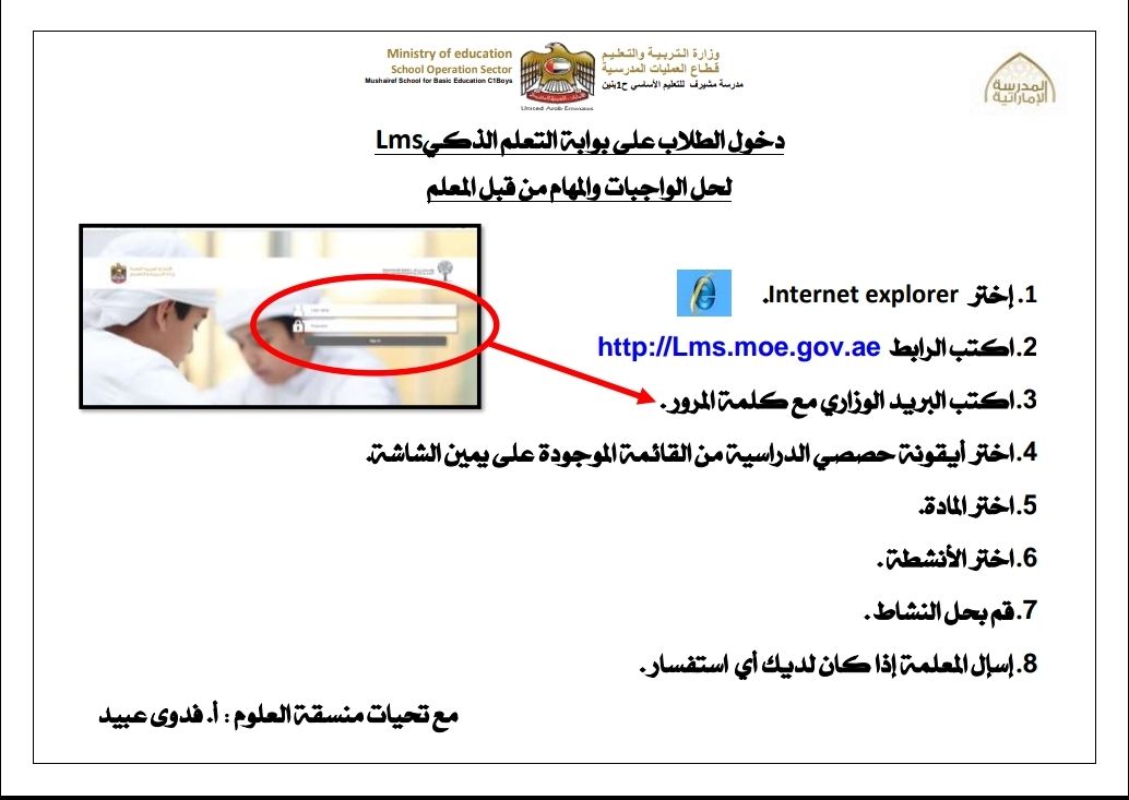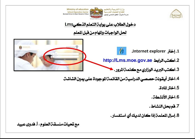 دخول الطلاب على بوابة التعليم الذكي lms لحل الواجبات والمهام من قبل المعلم / مدرسة مشيرف | ||