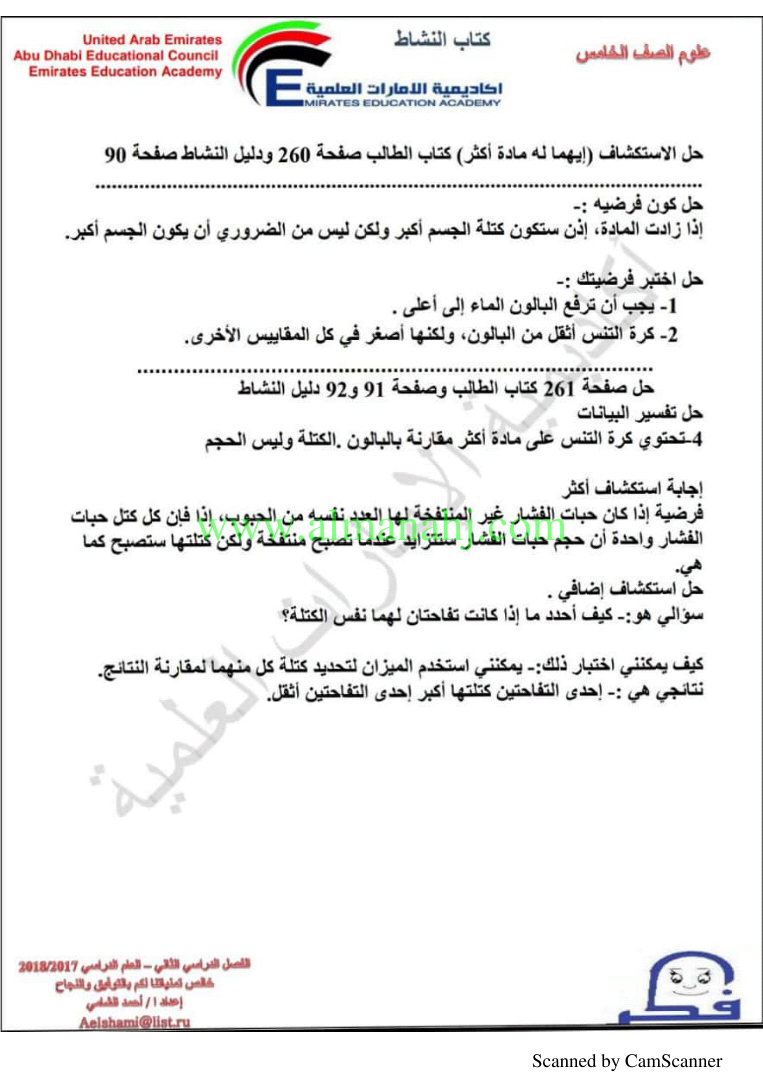 معلومات الملف: الصف الخامس, الفصل الثاني, علوم, 2018-2019, حل الوحدة 5 كتاب النشاط | |||