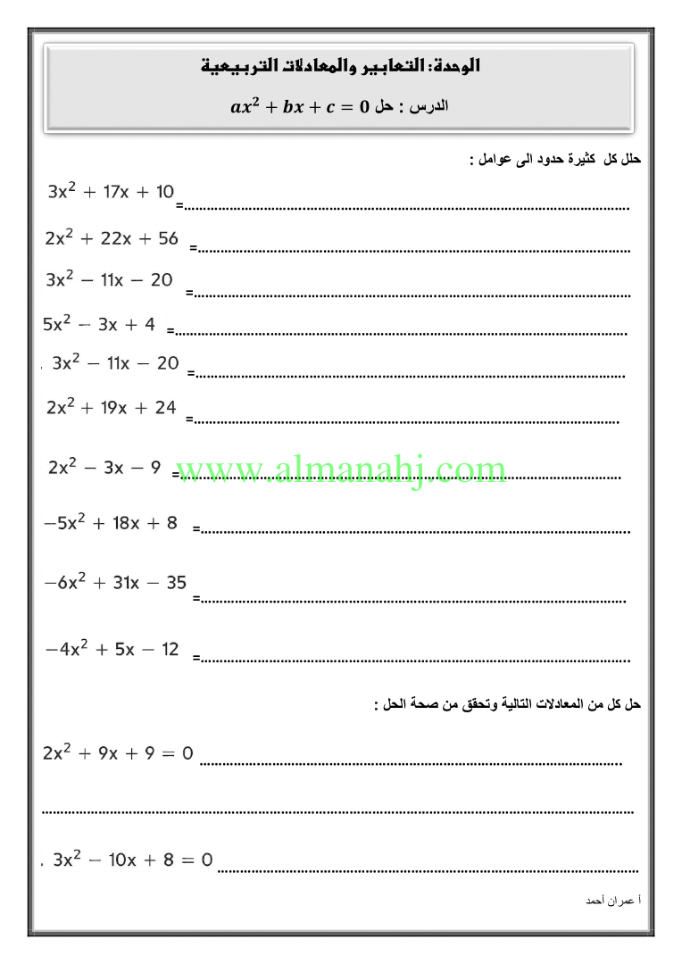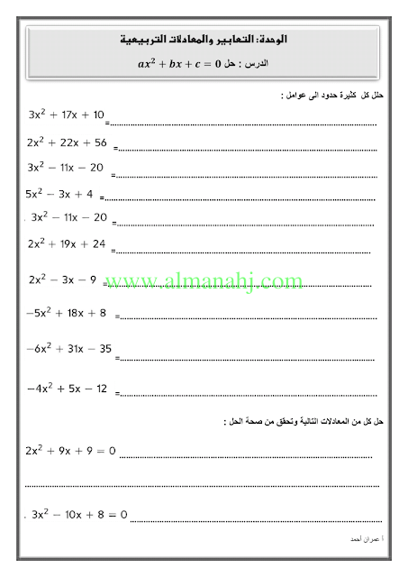 رابط تحميل وعرض ( ورق عمل وحدة التعابير والمعادلات ) | |||
