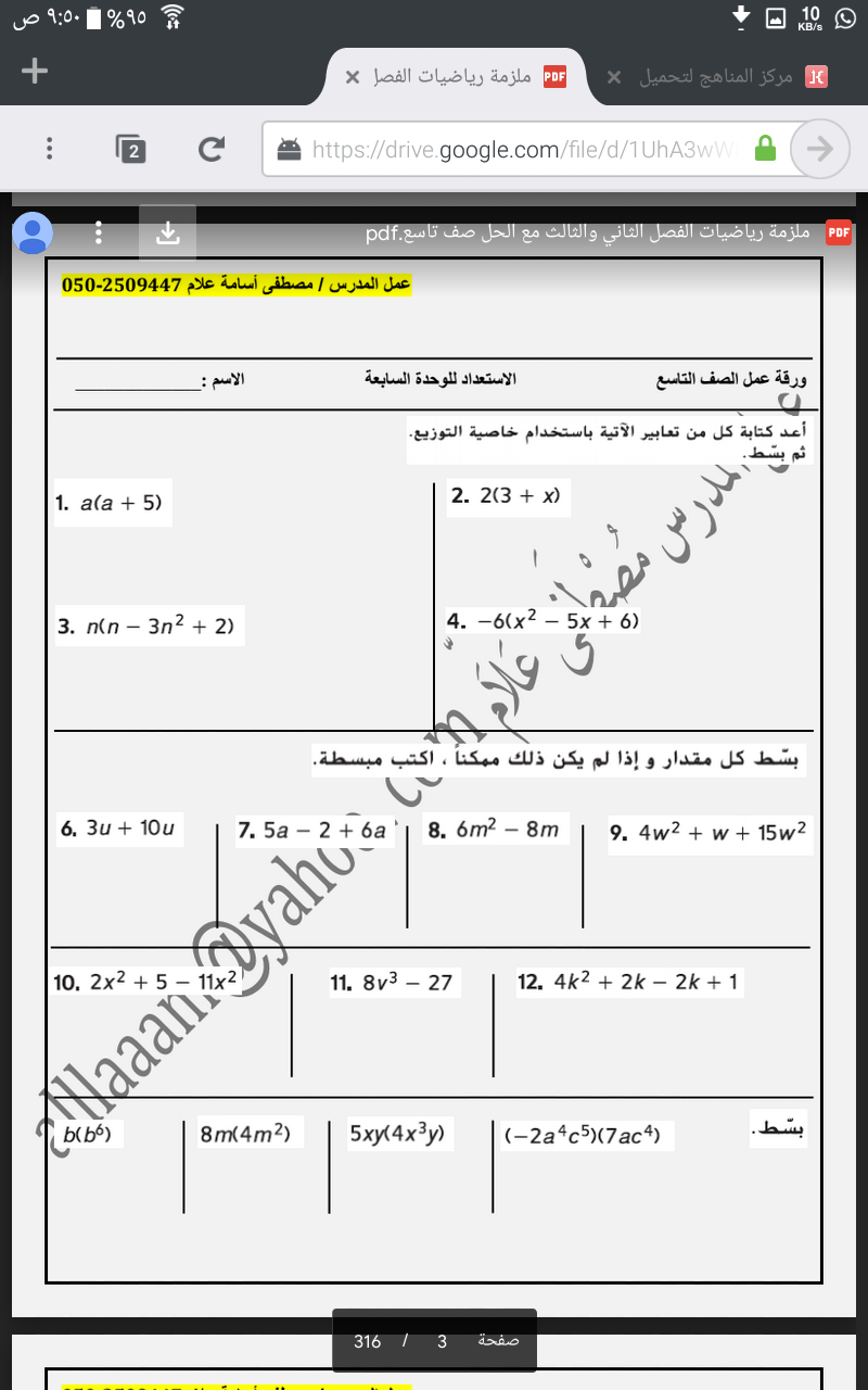 معلومات الملف: الصف التاسع, الفصل الثاني, رياضيات, 2018-2019, ملزمة رياضيات للفصلين الدراسيين الثاني والثالث | ||