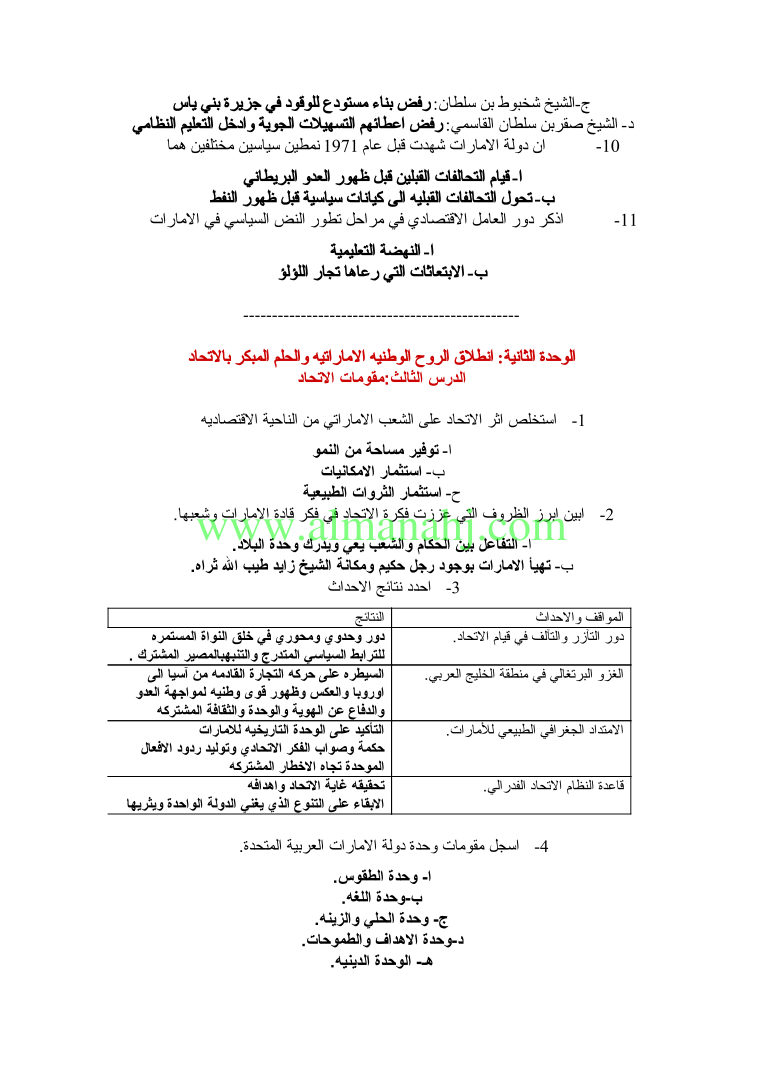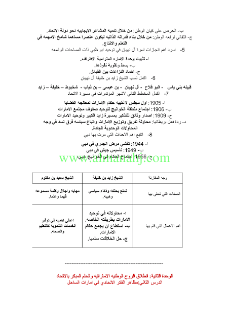 الملاحظات المثبتة في المناهج الإماراتية | |
