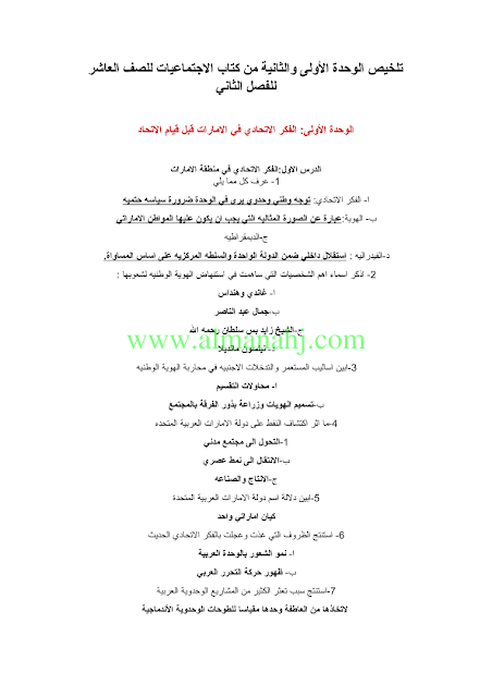 معلومات الملف: الصف العاشر, الفصل الثاني, اجتماعيات, 2018-2019, تلخيص الوحدة الاولى والثانية | |||