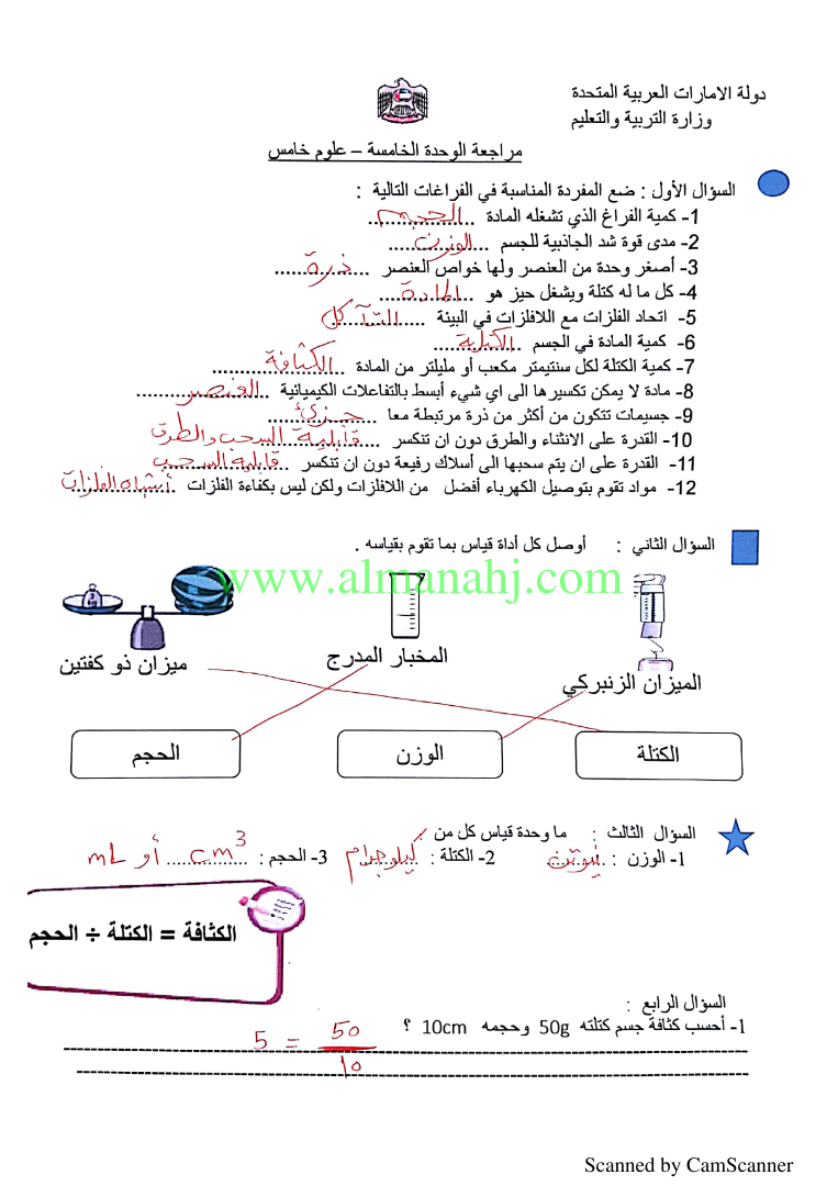 معلومات الملف: الصف الخامس, الفصل الثاني, علوم, 2018-2019, مراجعة الوحدة الخامسة | |||