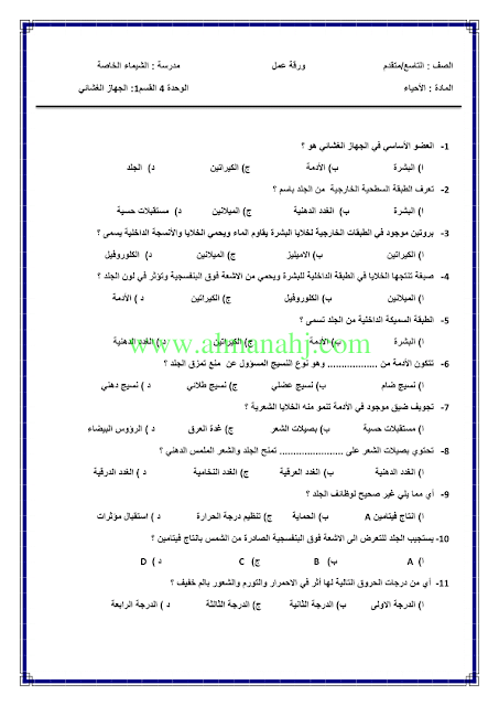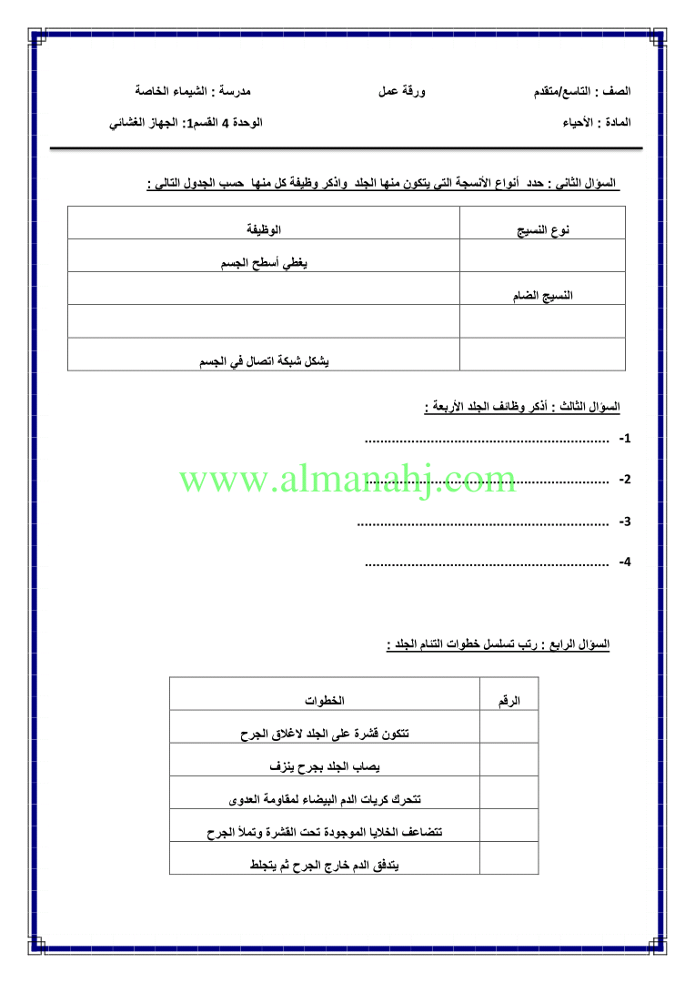 معلومات الملف: الصف التاسع المتقدم, الفصل الثاني, علوم, 2018-2019, وحدة 4 الجهاز الغشائي | |||
