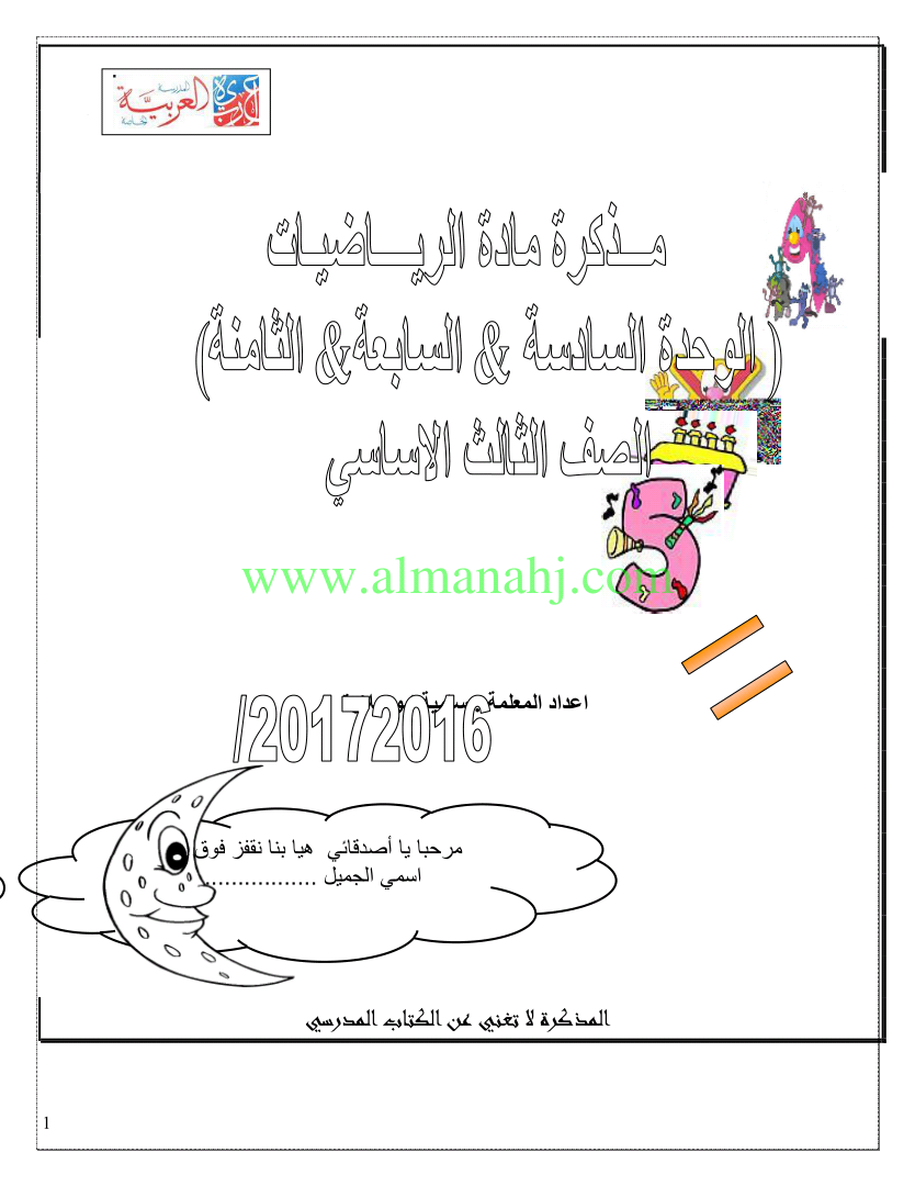 معلومات الملف: الصف الثالث, الفصل الثاني, رياضيات, 2017-2018, مذكرة مادة الرياضيات الوحدة 6-7-8 | |||