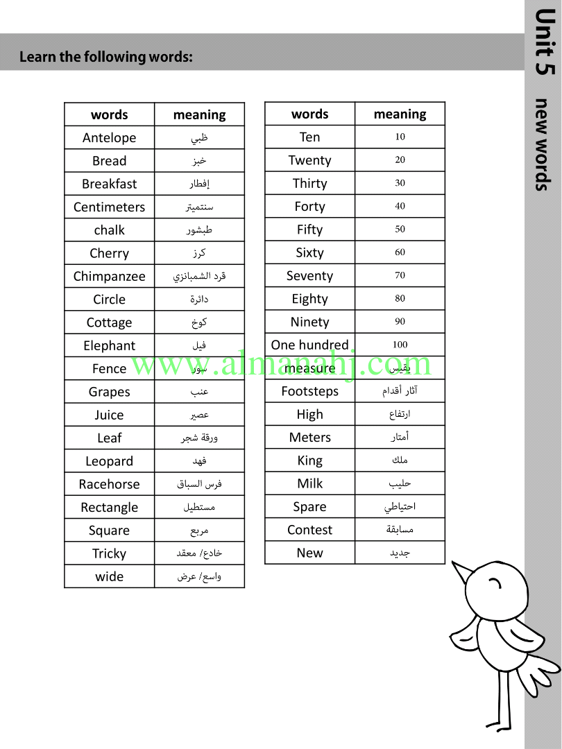 أكثر خمس كلمات زيارة اليوم بحسب: لغة انجليزية - الصف الثالث - الفصل الثاني