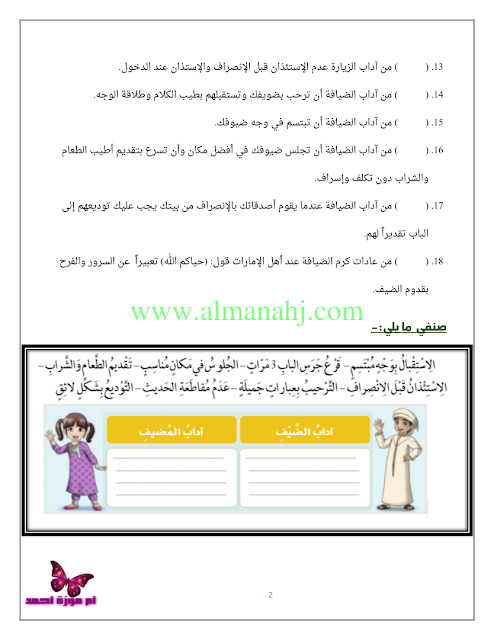 رابط تحميل وعرض ( ورقة عمل اداب الزيارة والضيافة ورقة عمل ثانية ) | |||