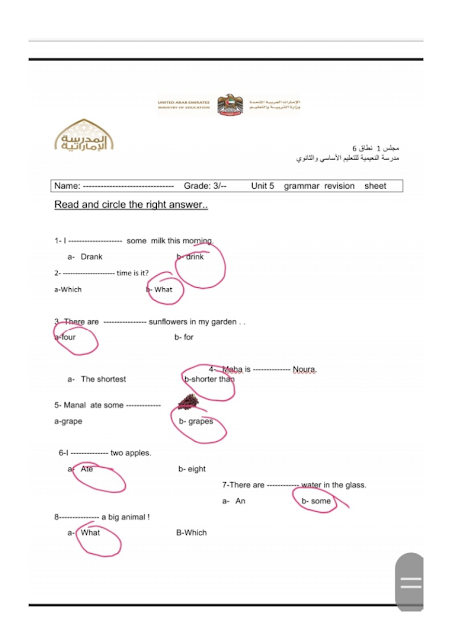 معلومات الملف: الصف الثالث, الفصل الثاني, لغة انكليزية, 2018-2019, حل الوحدة الخامسة | |||