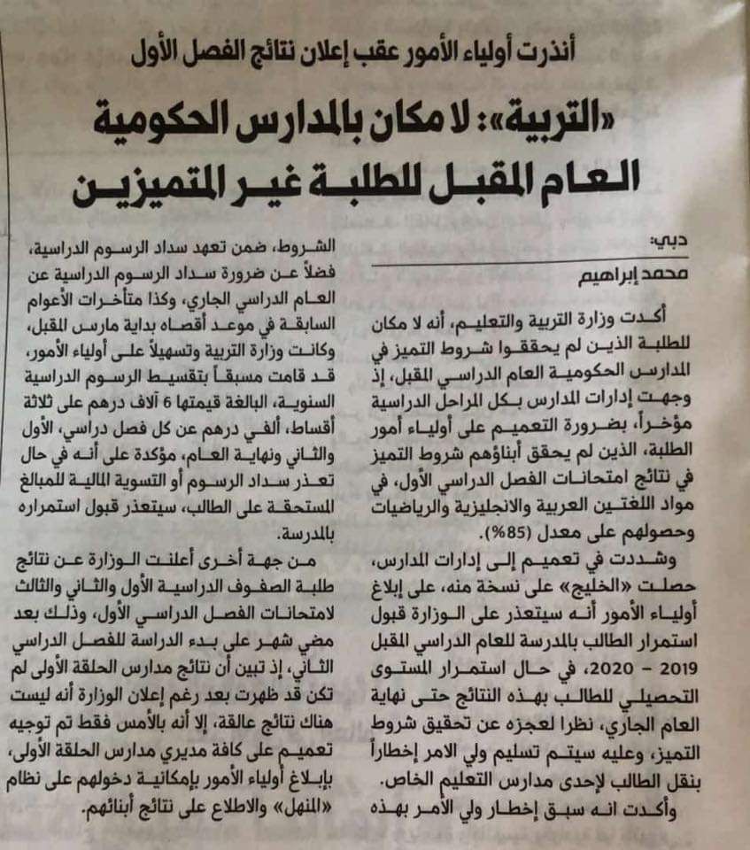 ابتداء من العام المقبل لن يتم قبول سوى الطلبة المتميزين في المدارس الحكومية | ||