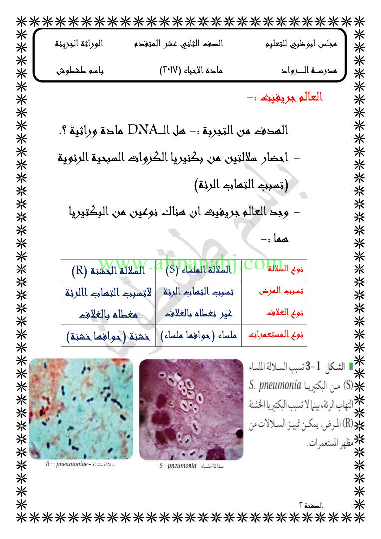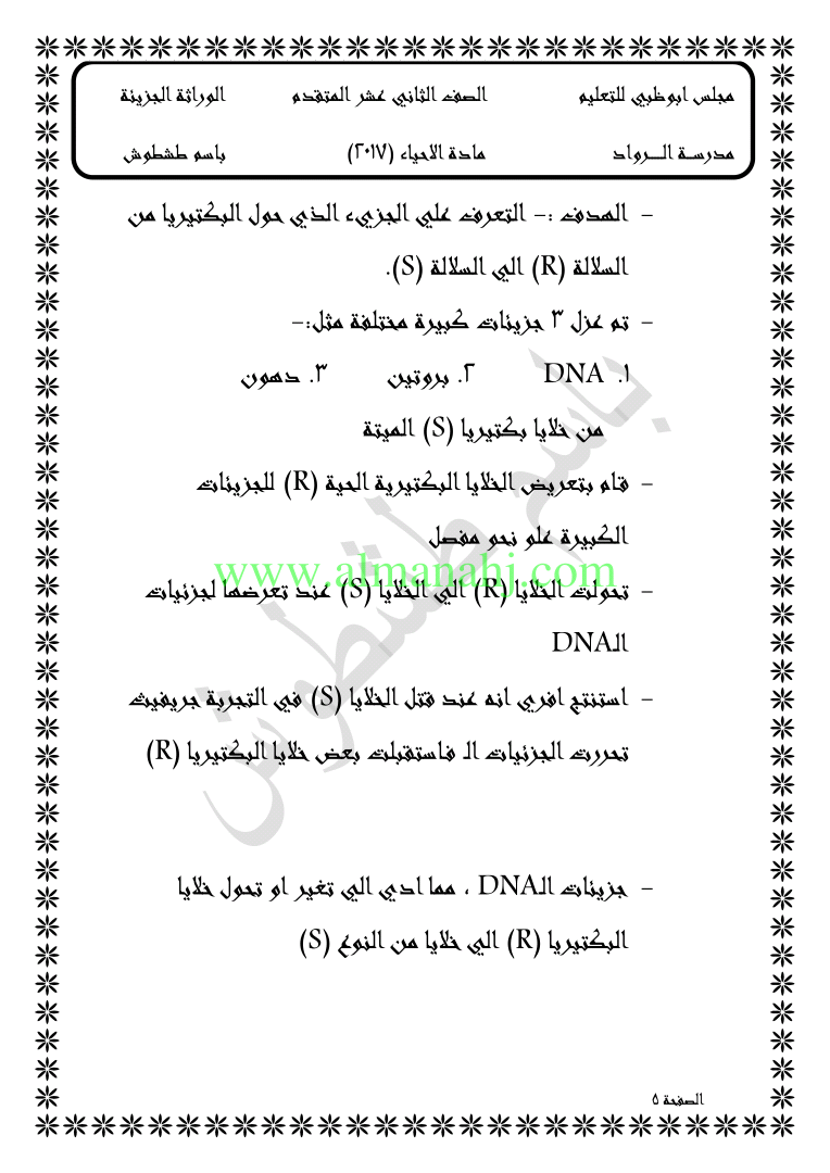 معلومات الملف: الصف الحادي عشر المتقدم, الفصل الثاني, علوم, 2018-2019, تلخيص الوراثة الجزيئة ملف اول | |||