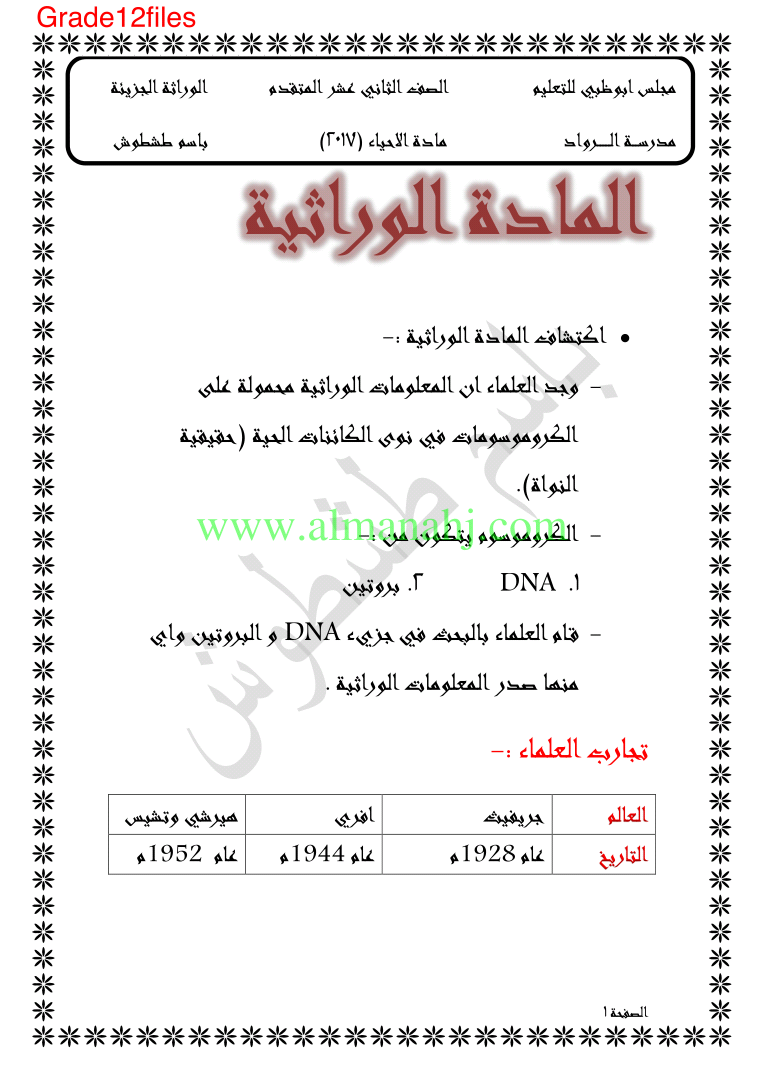 رابط تحميل وعرض ( تلخيص الوراثة الجزيئة ملف اول ) | |||