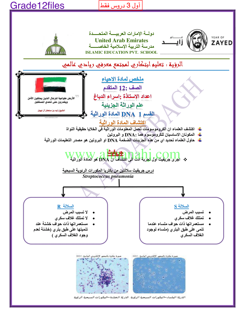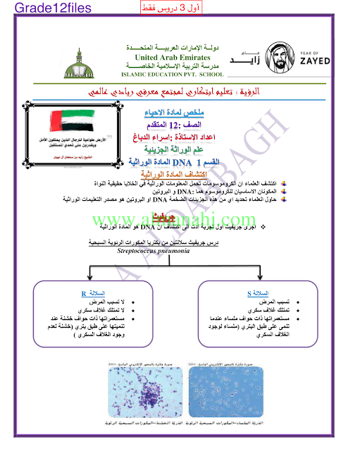 معلومات الملف: الصف الحادي عشر المتقدم, الفصل الثاني, علوم, 2018-2019, تلخيص اول ثلاث دروس الوارثة الجزيئية | |||