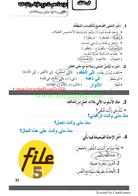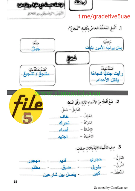 معلومات الملف: الصف الخامس, الفصل الثاني, لغة عربية, 2018-2019, حل الوحدة 5 دع الخوف وابدأ الحياة | |||