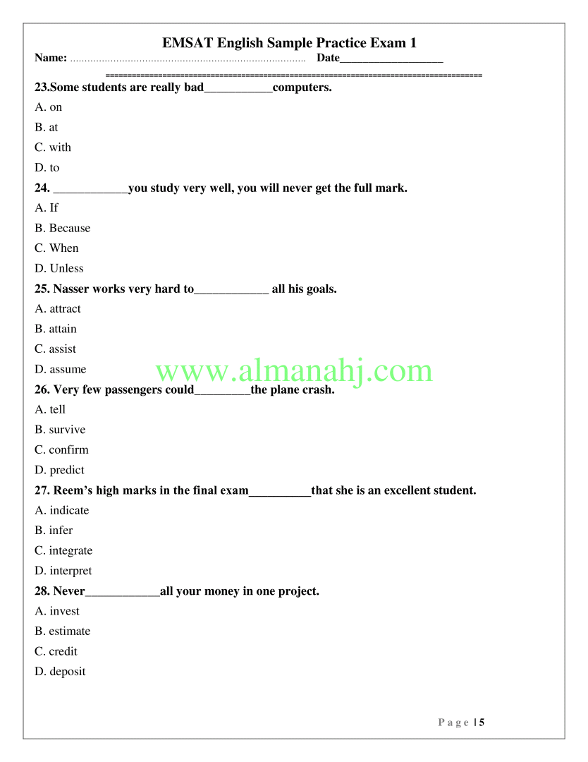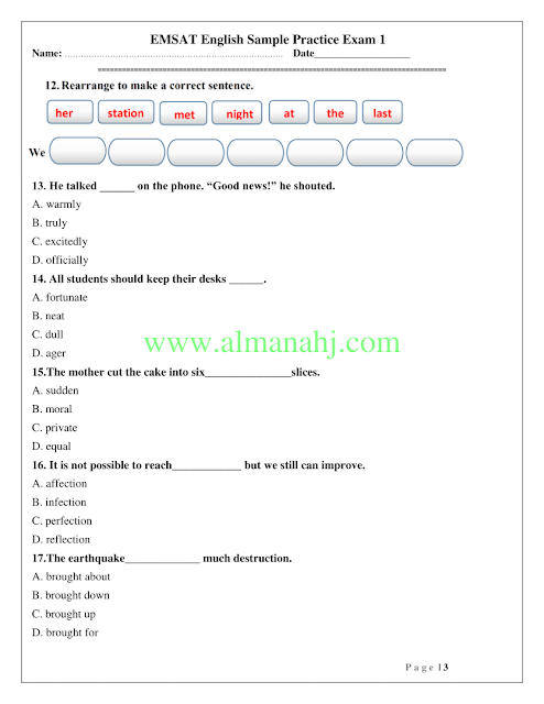 معلومات الملف: الصف الثاني عشر, الفصل الأول, لغة انكليزية, 2018-2019, امسات, امتحان تجريبي 1 | |||