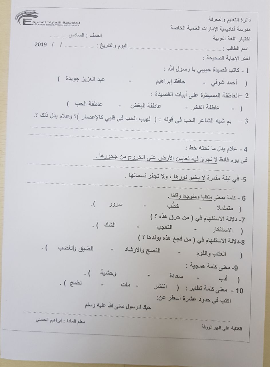 | أهلاً بكم جميعاً طلاباً ومدرسين وأهالي طلبة ومهتمين، في قسم دولة الإمارات ، نحن الآن في الفصل الأول من العام الدراسي 2025/2026 وتاريخ اليوم 2025/10/30 م | |