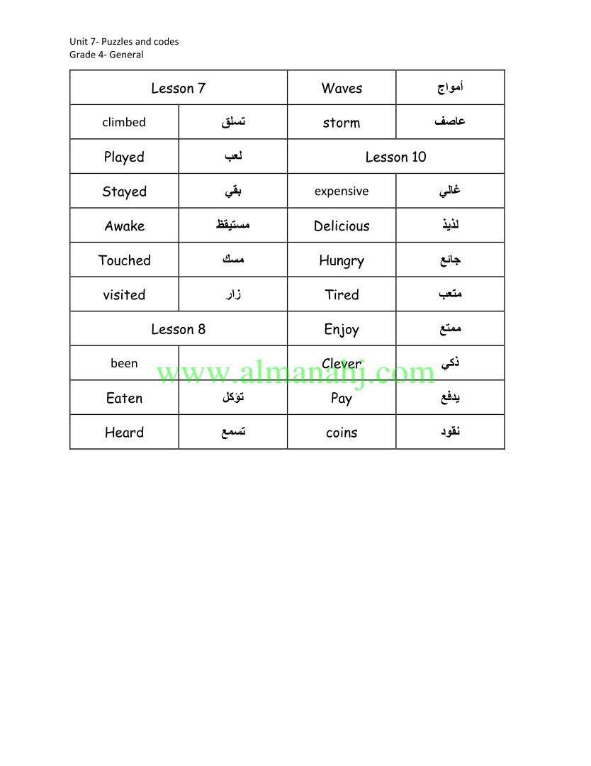 اضغط هنا لتحميل وعرض ( كلمات الوحدة السابعة ملف 2 ) |