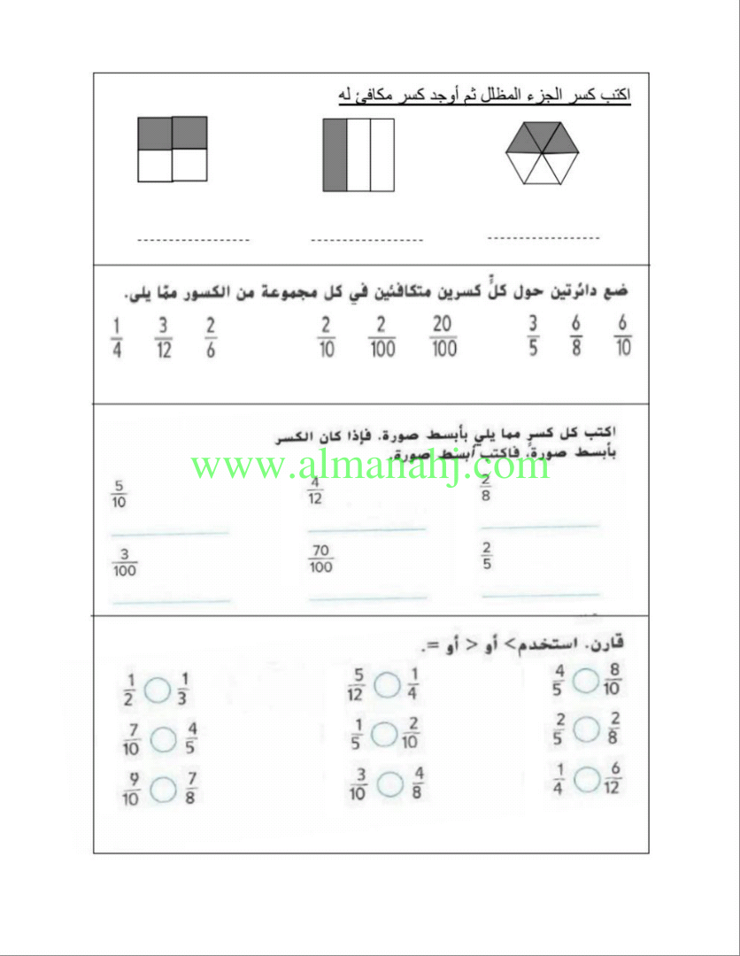 معلومات الملف: الصف الرابع, الفصل الثاني, رياضيات, 2018-2019, الكسور | |||