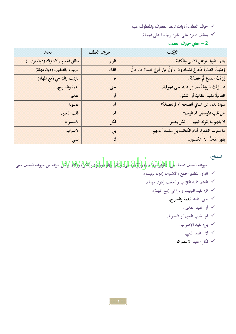 معلومات الملف: الصف السادس, الفصل الثاني, لغة عربية, 2018-2019, تركيب العطف | |||