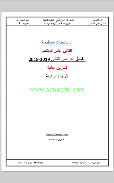 معلومات الملف: الصف الثاني عشر المتقدم, الفصل الثاني, رياضيات, 2018-2019, تمارين عامة واثرائية للوحدة الرابعة | |||