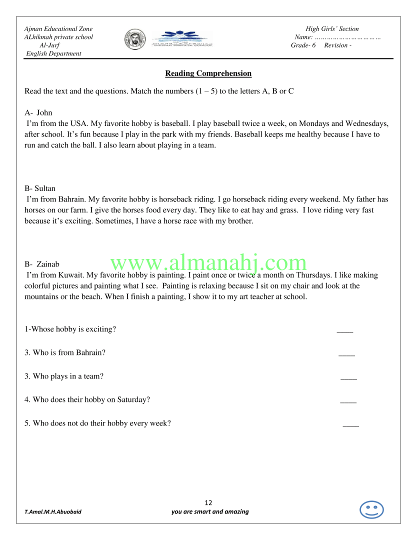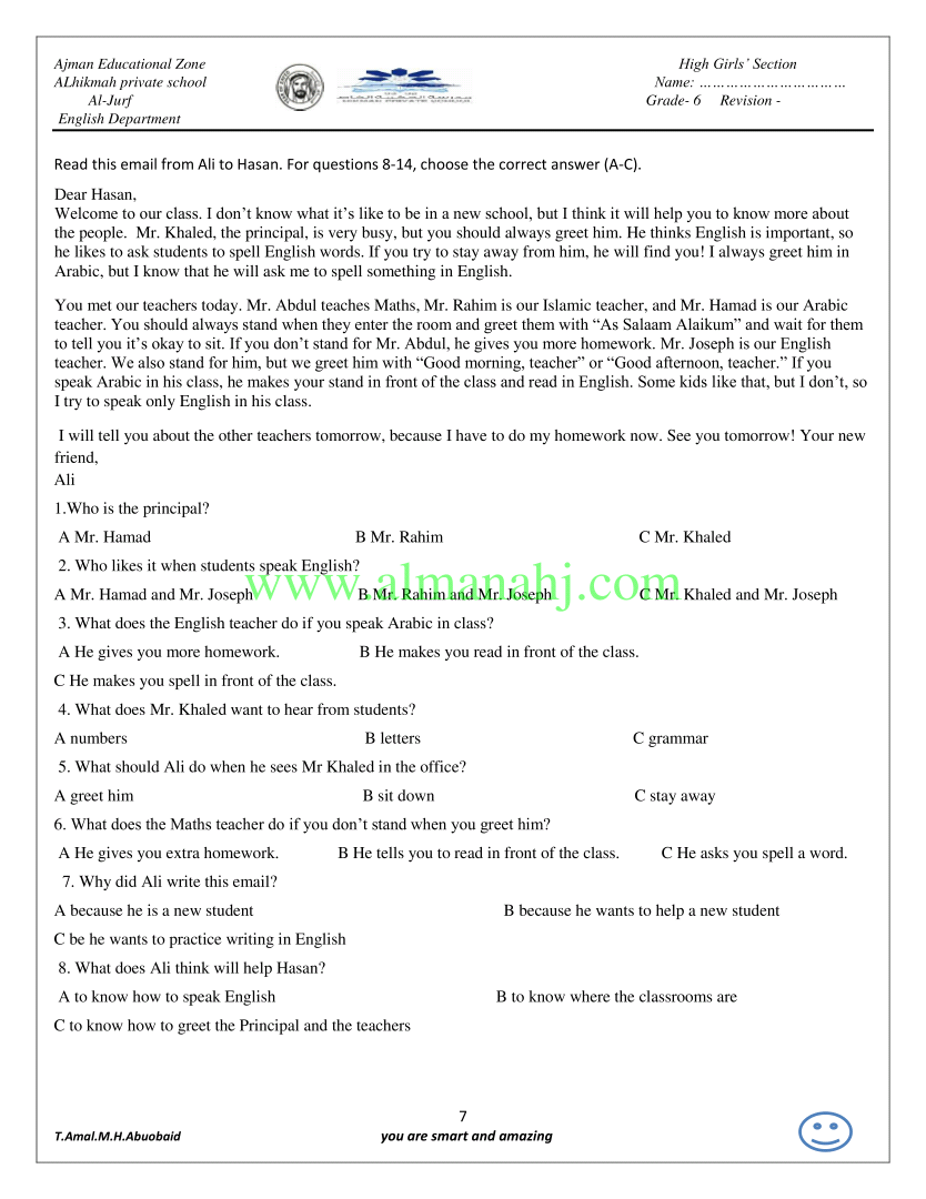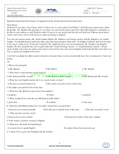 أنت هنا: موقع المناهج ⇦ المناهج الإماراتية ⇦ الصف السادس ⇦ لغة انجليزية ⇦ الفصل الثاني ⇦ أوراق عمل |