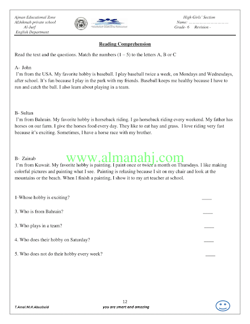 معلومات الملف: الصف السادس, الفصل الثاني, لغة انكليزية, 2018-2019, اوراق عمل عددها 20 ورقة | |||